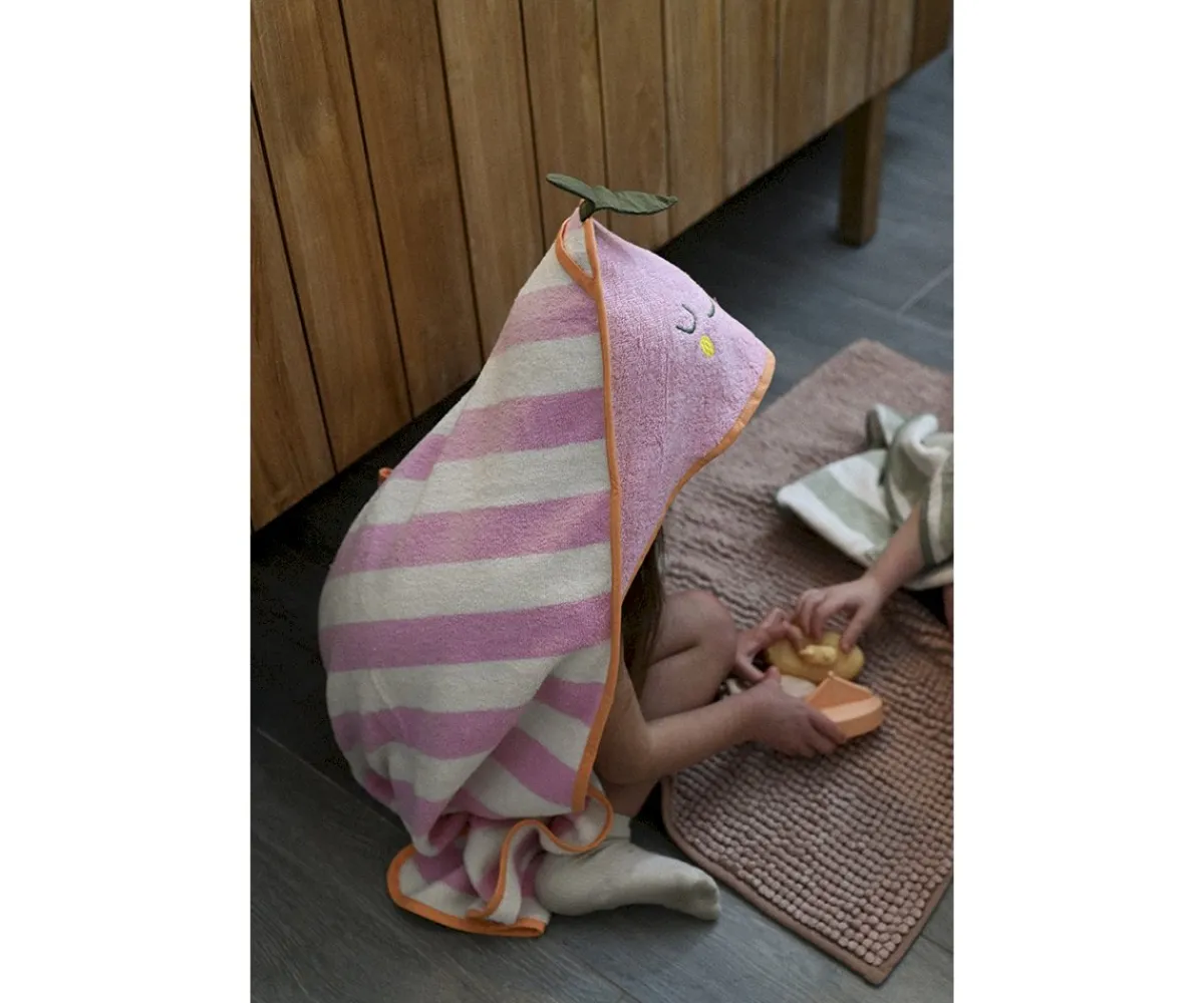 Haz de la hora del baño un momento especial con la bonita toalla con capucha Mandy la mandarina de The Cotton Cloud.