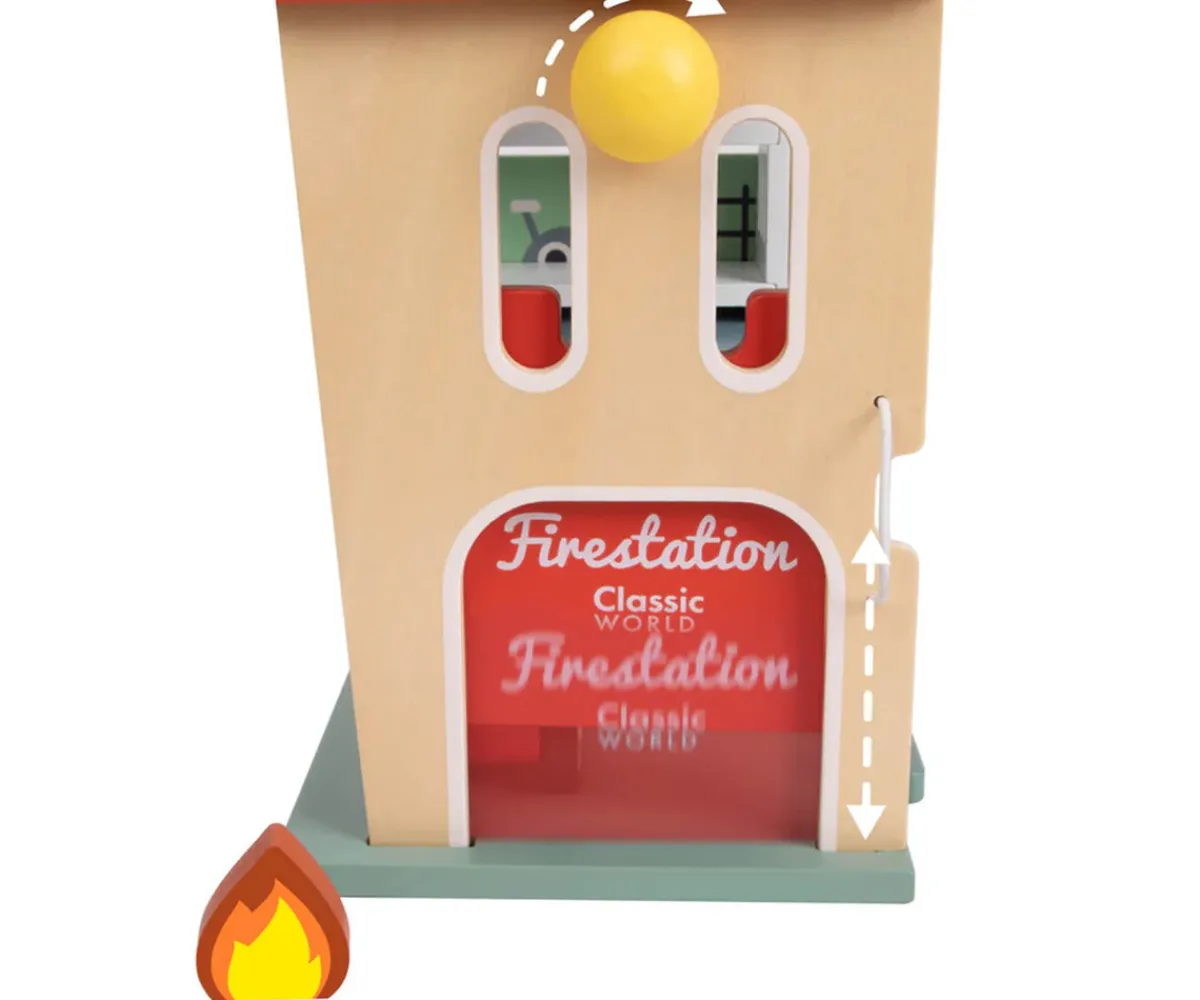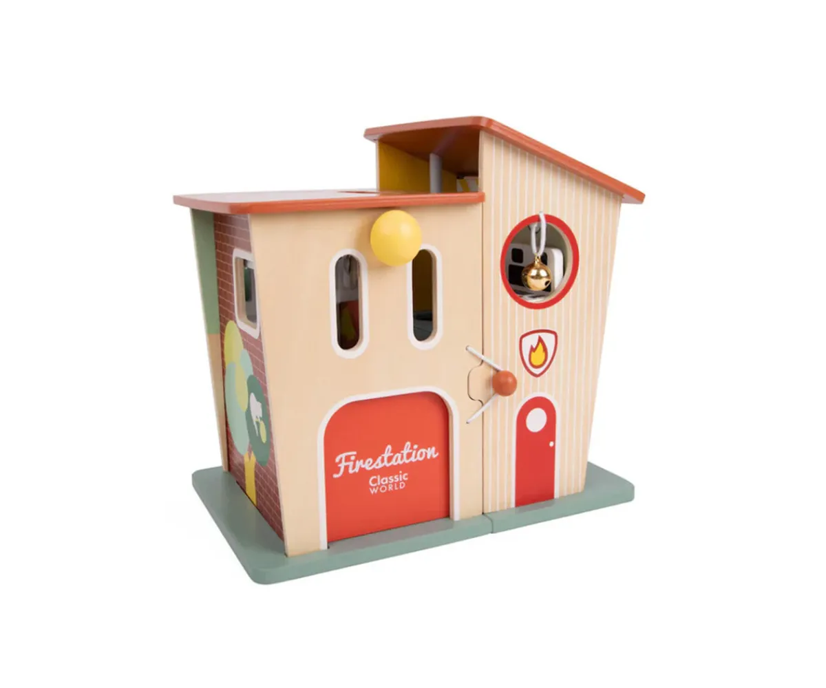 Una estación de bomberos de madera completa y portátil que se abre como una caja, lo que permite cambiar la forma de jugar, crear diferentes escenarios y acceder fácilmente a todas sus funciones. ¡Perfecta para llevar a cualquier lugar!