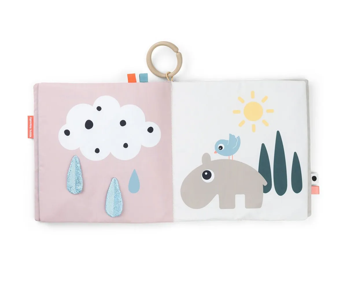 Diferentes texturas, diferentes telas, divertidas y coloridas ilustraciones para estimular los sentidos y la atención de los más peques con el original libor de actividades de Done by Deer.