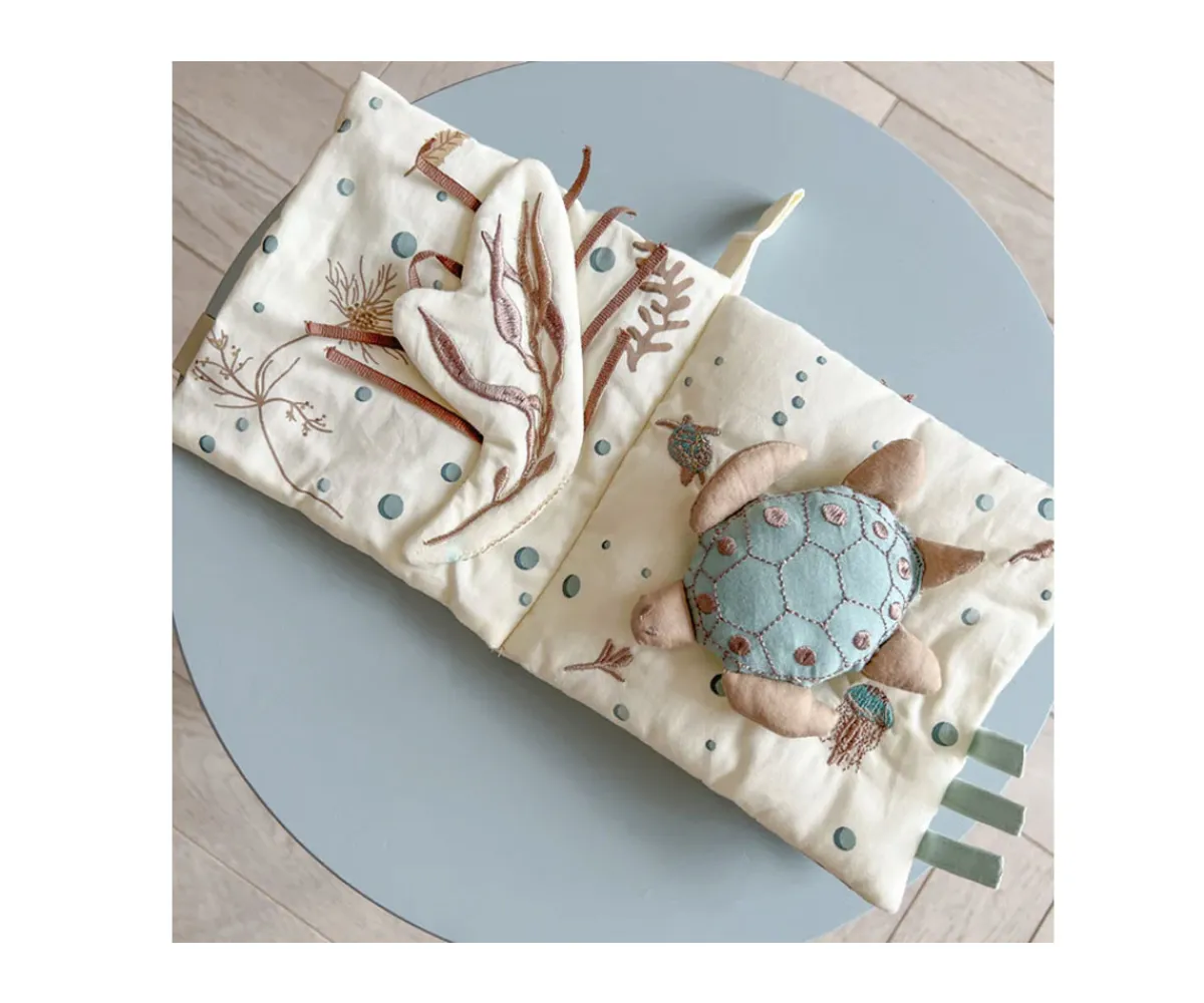 El libro de actividades más tierno para tu peque, con delicados bordados y preciosos elementos inspirados en el mundo marino.