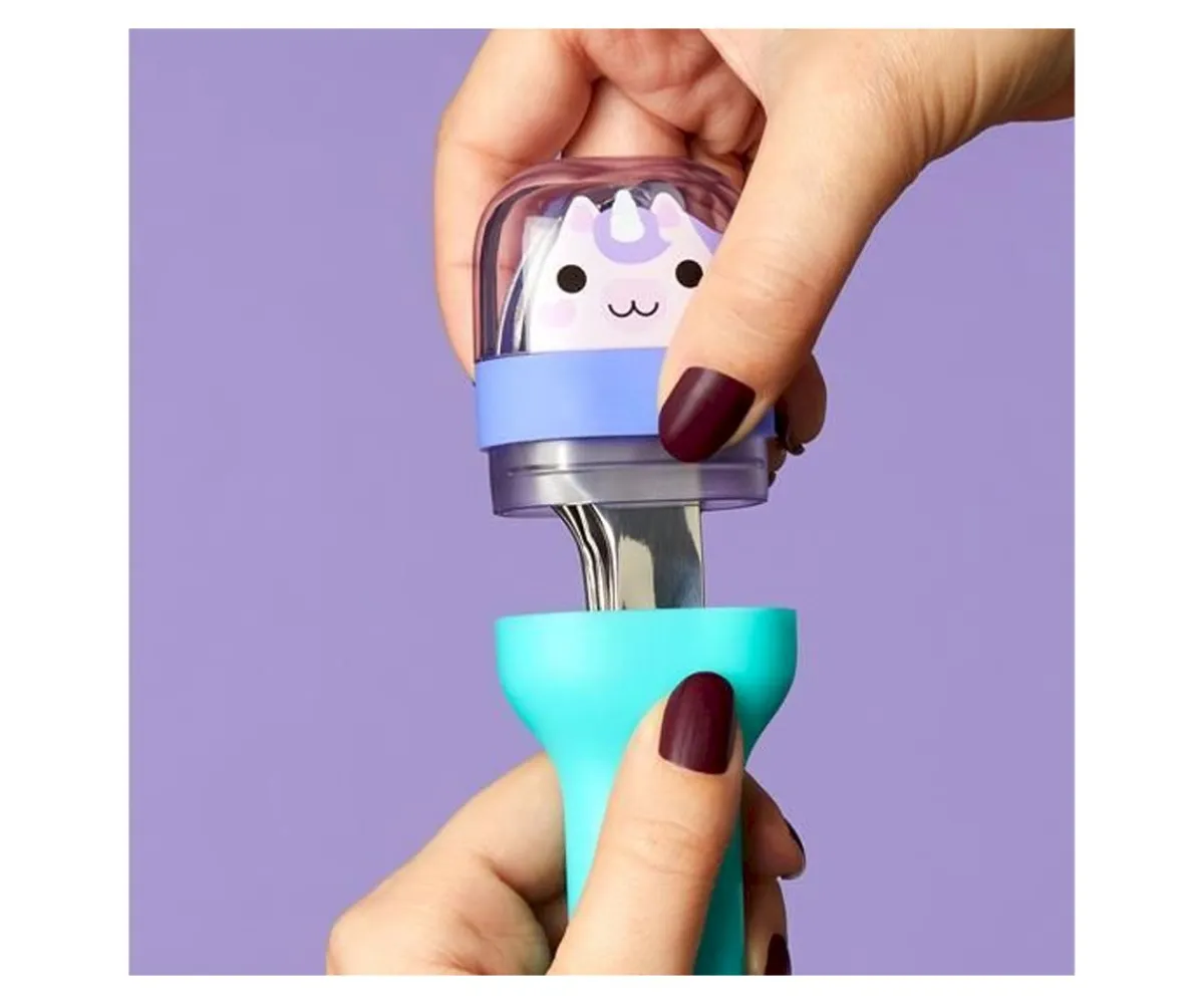 Set de cubiertos de acero inoxidable perfectos para el momento de la comida en cualquier parte. Puedes guardarlos cómodamente en su práctico estuche, en el que quedan perfectamente encajados gracias a la pieza de silicona que los envuelve.
