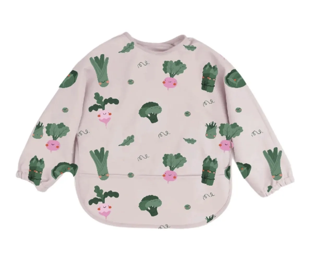 Divertido babero con mangas de la marca The Cotton Cloud. Es versátil, perfecto para la hora de la comida o para realizar manualidades. Con material impermeable y un práctico bolsillo recoge migas lo hace indispensable para proteger la ropa de los peques.
