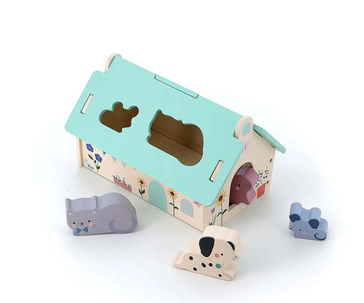 ¡Un perrito, un ratón, un gato y un conejo! Este clasificador de formas, diseñada por Sarah Betz-Cubeely, estimula la lógica y la destreza de los peques. Con un tejado desmontable, es fácil recuperar las piezas y seguir jugando sin parar.