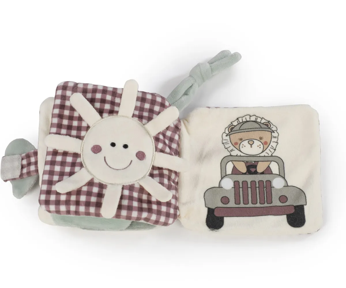 Este adorable libro está diseñado para estimular los sentidos y el desarrollo temprano de tu bebé. Cada página ofrece sorpresas como un león asomándose, una luna arrugada con estrellas, un sol sonriente y un león aventurero en un jeep, que fomentan la curiosidad y las habilidades motoras finas.