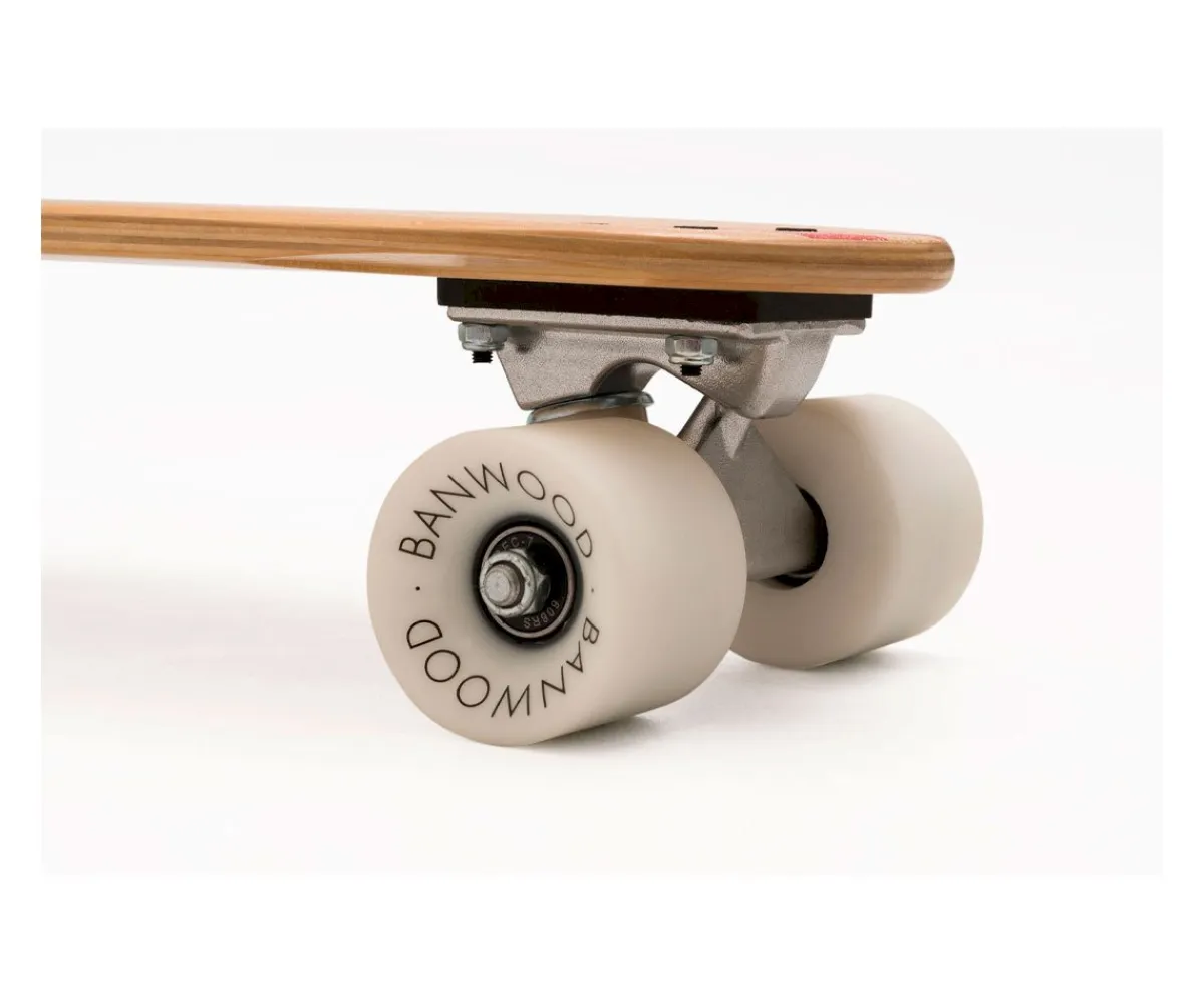 Los monopatines son ideales para usar en aceras, circuitos y parques urbanos. Sus anchas ruedas de poliuretano amortiguan vibraciones y garantizan una conducción segura. La tabla cruiser de los patinetes Banwood presenta un agarre suave y transparente diseñado pensando en los pies descalzos de los peques.