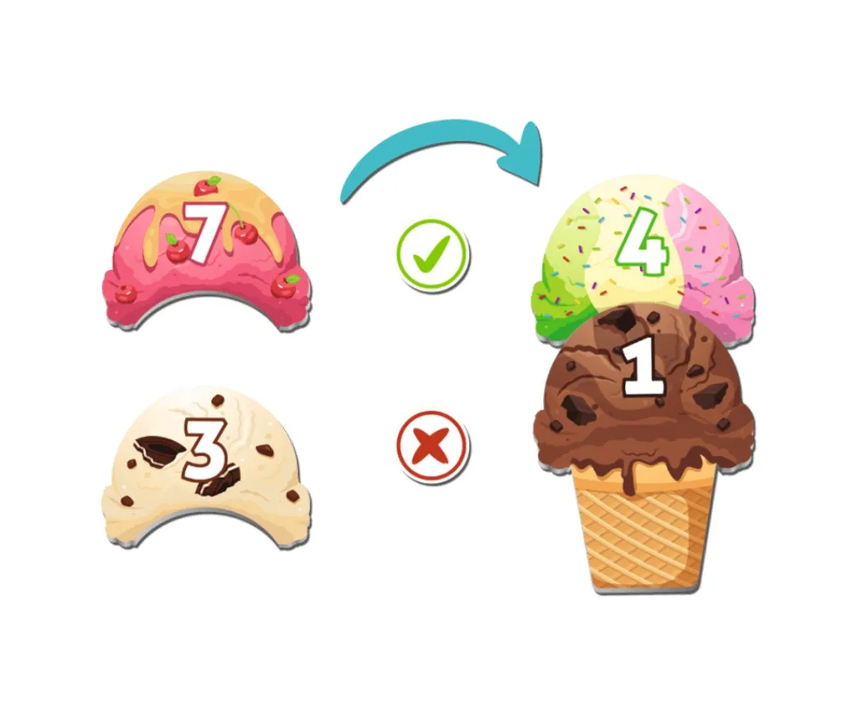 - Solo pueden añadir una bola a su helado, si el valor de ésta es superior a la última bola que tienen en su helado, hasta conseguir un helado de 10 bolas.