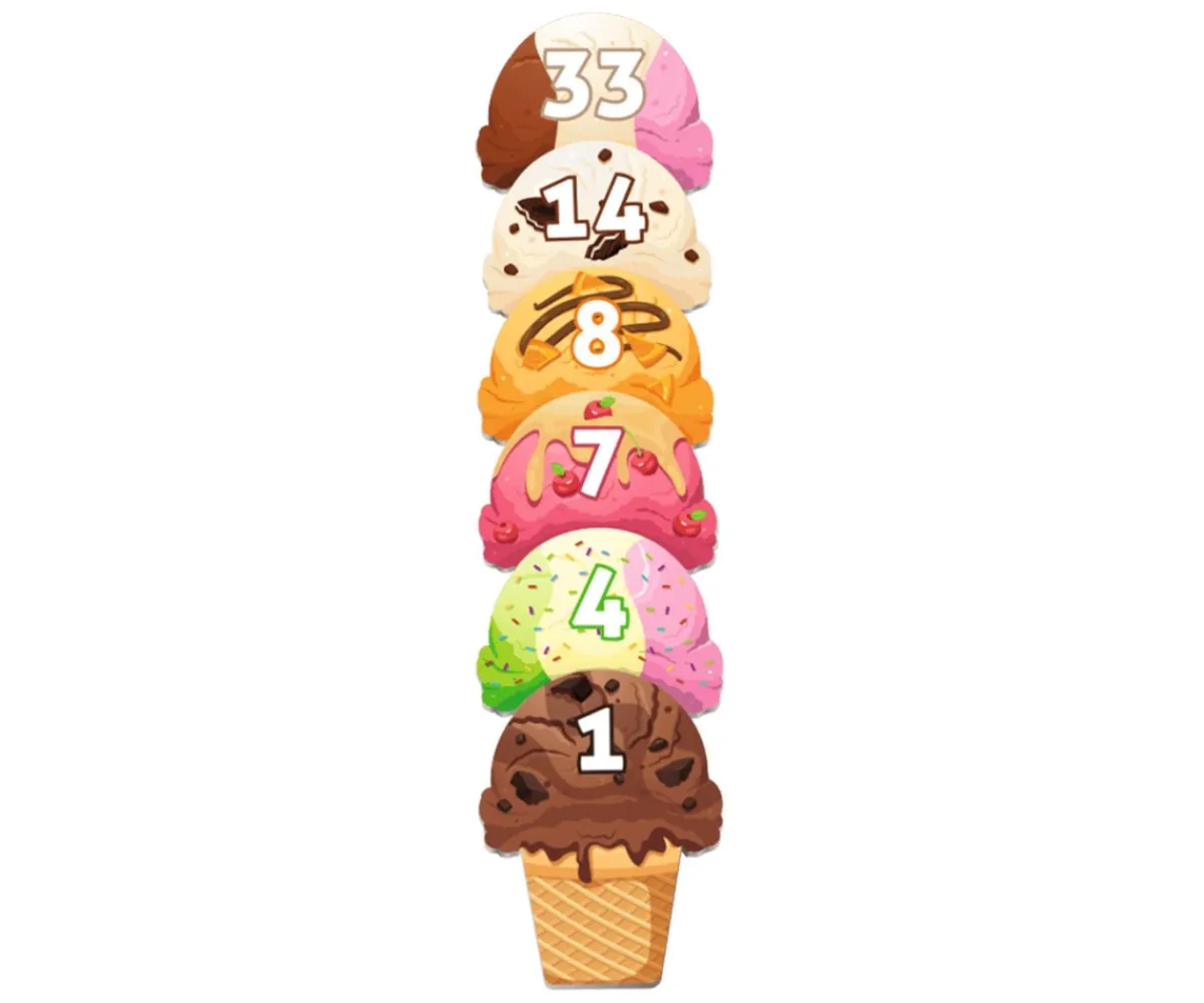 - Cada jugador empieza con 1 cono y 1 bola de helado. Las demás bolas están numeradas del 2 al 49 y se colocan bocabajo en la mesa.