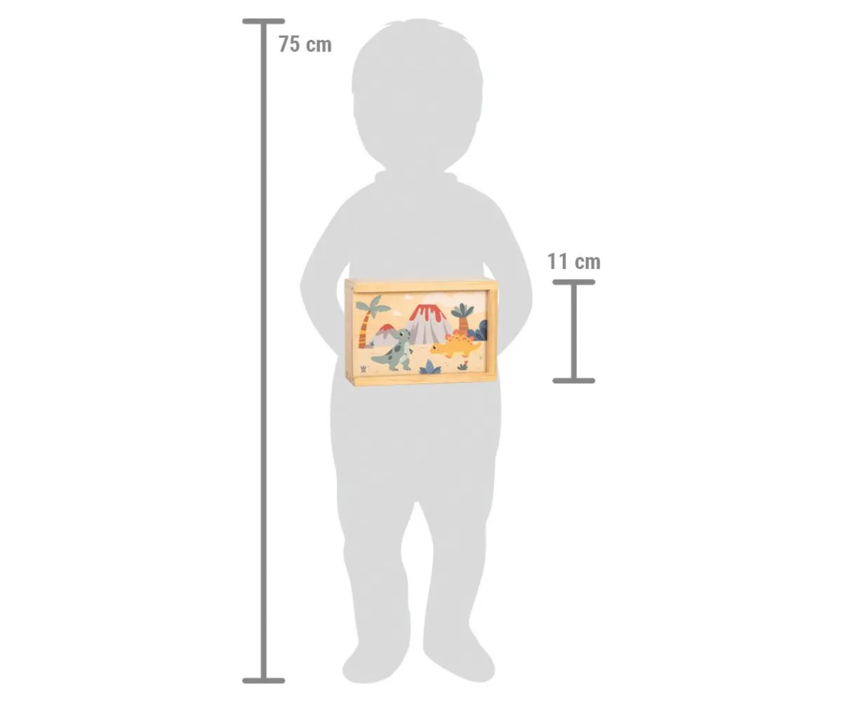 Un divertido juego de madera para que los amantes de los dinosaurios trabajen la concentración y la memoria a la vez que descubren y conocen a estos gigantes prehistóricos.