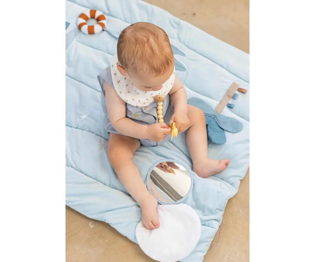 Esta preciosa manta de juegos acolchada Monnëka está llena de texturas y elementos que estimularán los sentidos de los peques. Hecha para horas de entretenimiento, los pequeños exploradores podrán ver y descubrir un espejo, etiquetas,diferentes texturas…