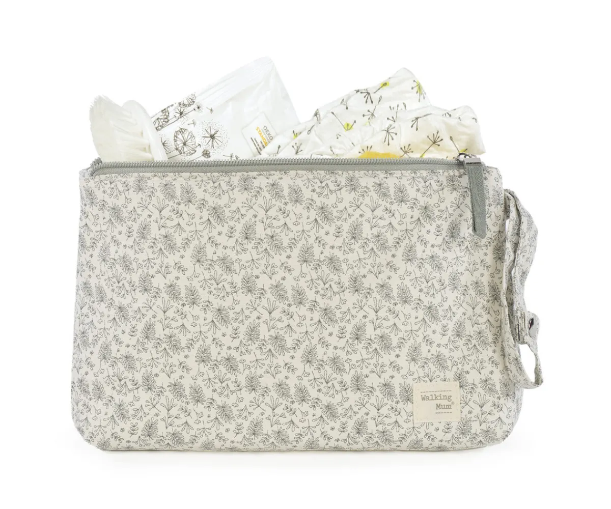 Neceser muy práctico de la colección Gala Mint de Walking Mum, para llevar todos los productos de aseo de tu bebé. Tiene un cierre seguro de cremallera para evitar que algo pueda salirse.