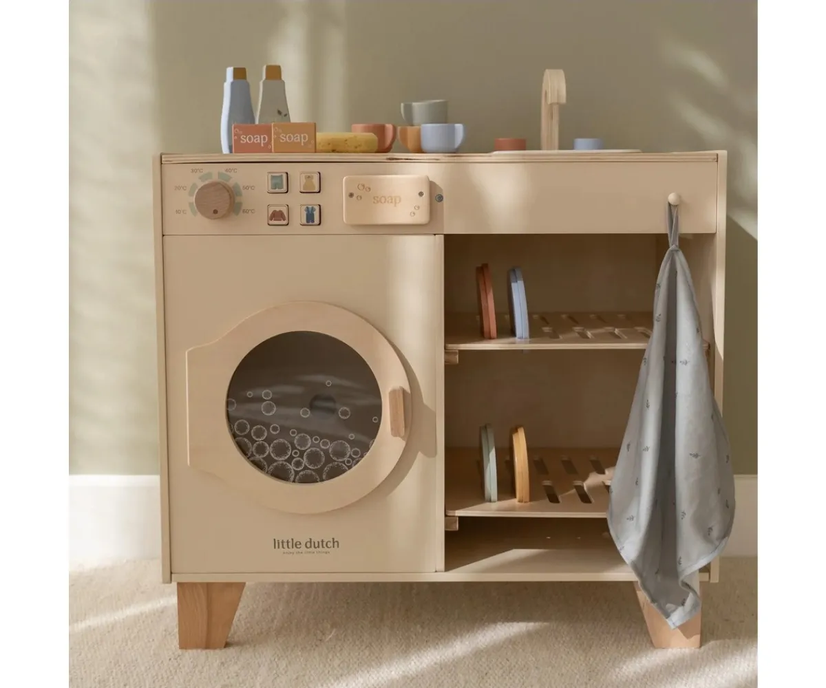 Con esta preciosa lavadora y lavavajillas de madera FSC de Little Dutch, los pequeños podrán imitar a los adultos mientras desarrollan habilidades clave a través del juego simbólico.