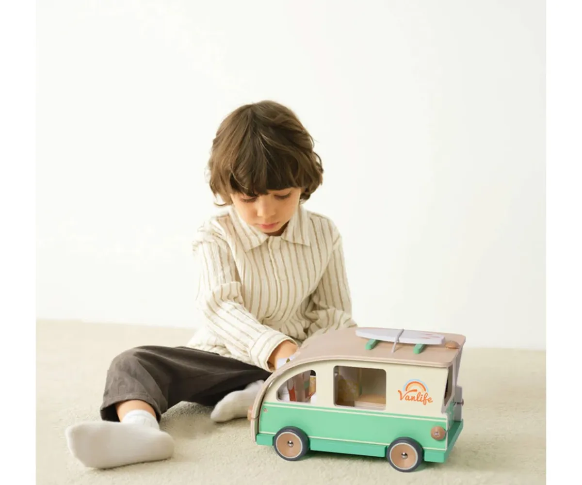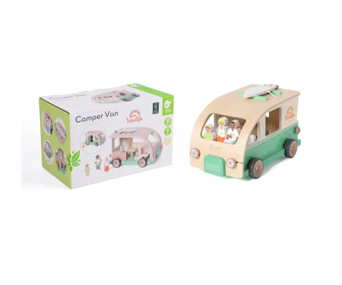 - Incluye: autocaravana,tabla de surf,3 figuritas de madera (papá, mamá e hijo)