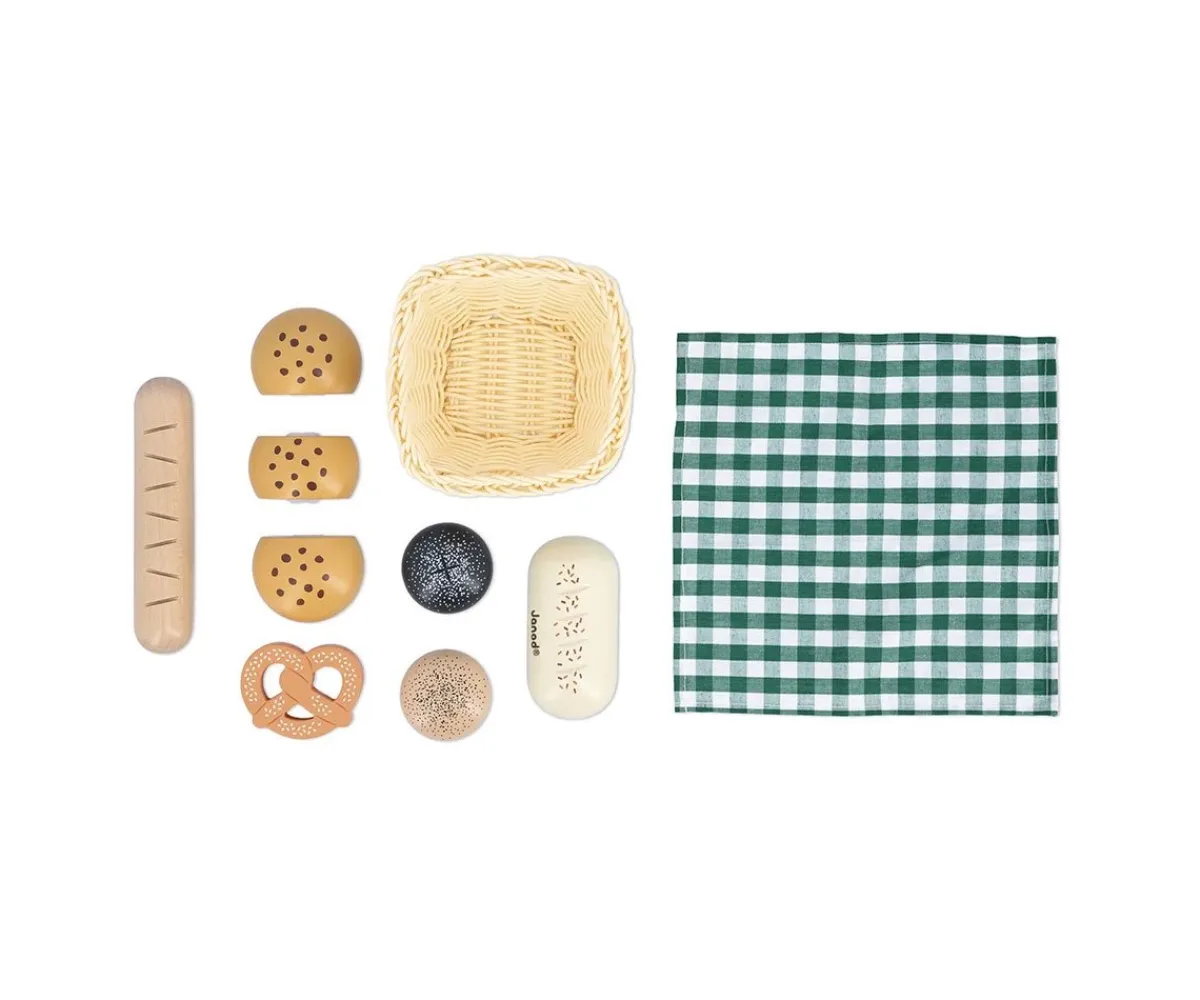 - Incluye: 1 cesta con servilleta,1 baguette, 1 hogaza de granja, 1 hogaza oscura, 1 hogaza de sésamo, 1 pretzel, 1 brioche con pepitas de chocolate