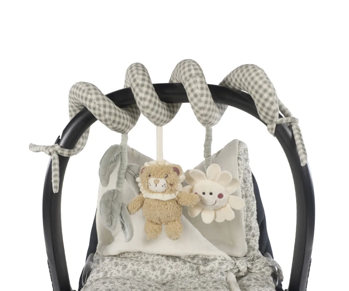La espiral de actividades tiene una adorable cabeza de león en un extremo y decorada con la colección Gala Mint de Walking Mum, es ideal para estimular y entretener a tu bebé. Confeccionado en materiales suaves y seguros, se adapta fácilmente a cochecitos o sillas de auto. Incluye colgantes con texturas, formas y sonidos que fomentan el desarrollo sensorial.
