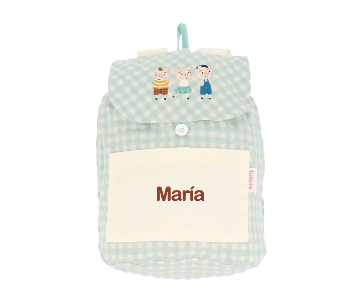 Mochila Infantil de Tela Personalizable de la Colección Vuelta al Cole The Three Little Pigs de Tutete.
