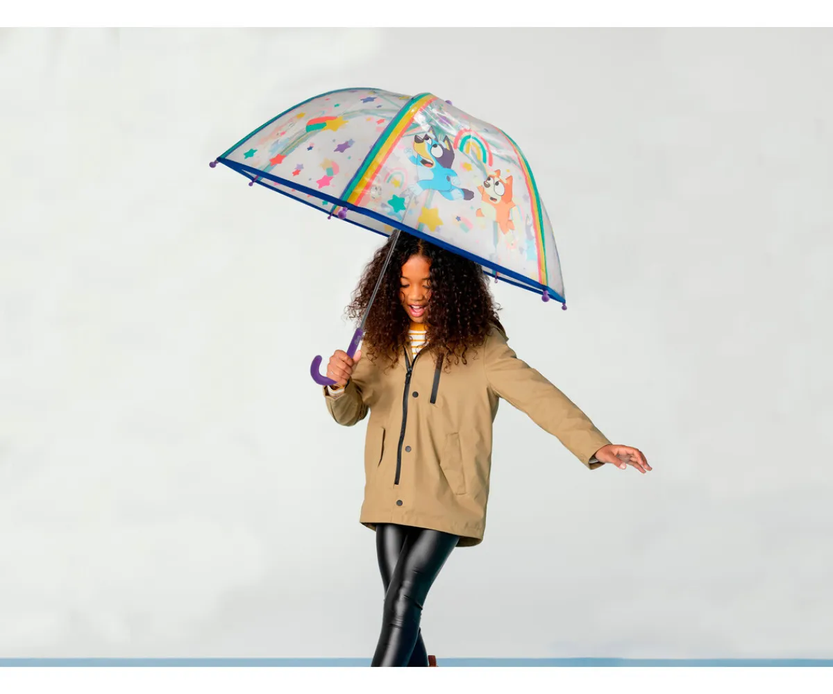 El paraguas infantil transparente burbuja de Bluey es el accesorio perfecto para que los peques disfruten incluso en los días de lluvia. Con un diseño oficial de Sanrio y una estructura tipo burbuja de 48 cm, ofrece una protección superior gracias a su forma envolvente, que cubre mejor y evita que el viento y las gotas lleguen a la cara y la ropa.