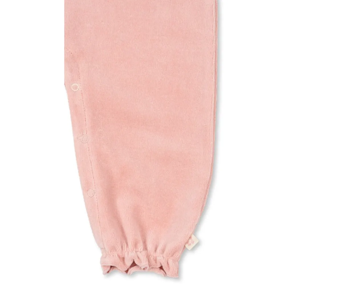 Tu peque irá bien arropadito con el mono de terciopelo suave con cuello y bordado en el pecho de Konges Slojd.