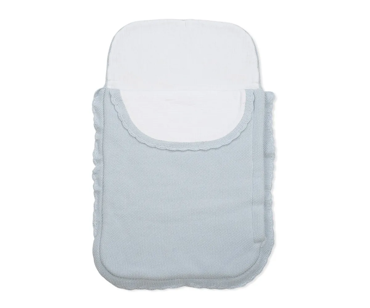 Su exterior es de tricot con forro intrerior en bambula lisa, que proporciona un contacto muy suave con la piel del bebé. Además dispone de botones a presión en uno de sus laterales para abrir y cerrar fácilmente.