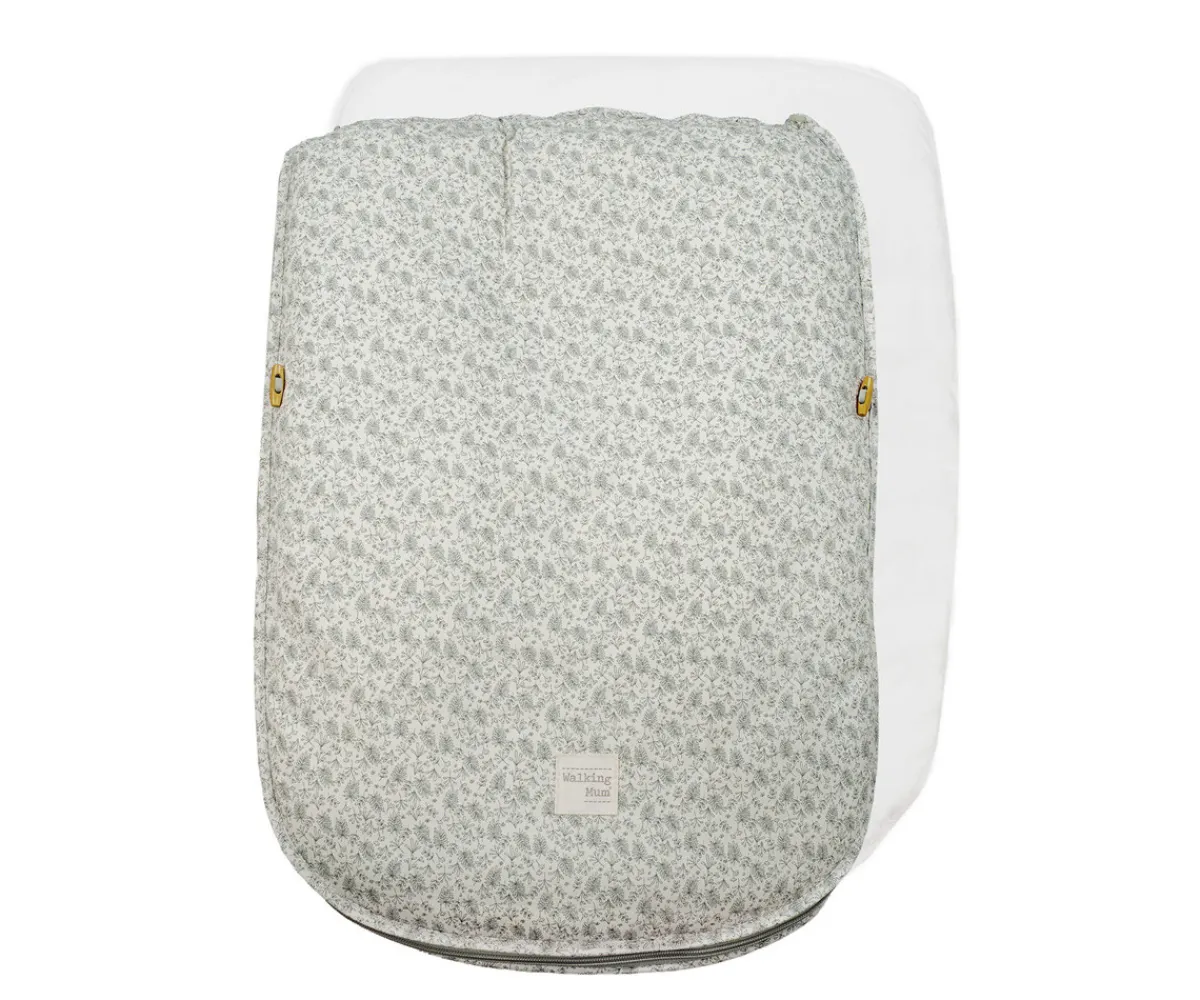 La funda de silla Gala Mint de Walking Mum, con su estampado floral y confeccionada en 100% algodón, es el complemento perfecto para el paseo de tu bebé. Diseñada para cubrir la base de la silla, incluye un saco que mantendrá a tu pequeño cómodo y abrigado durante la primavera y el otoño.