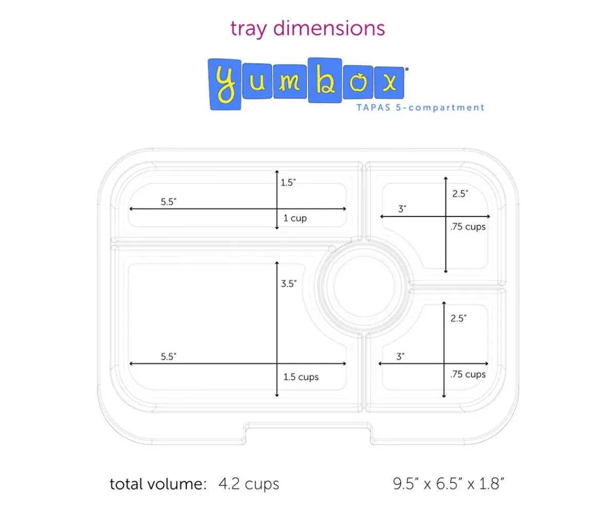 La diferencia del tamaño Tapas es que las bandejas son intercambiables. Esto significa que puedes comprar una bandeja adicional y elegir entre tener 4 o 5 compartimentos, según tus necesidades.