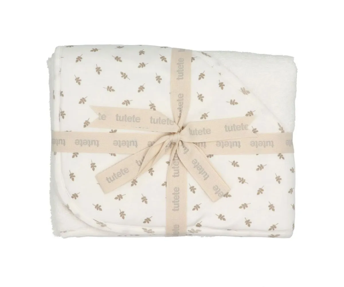 Con esta capa de baño de la colección Leaves de Tutete tu bebé se sentirá como en tus brazos cuando salga del baño y lo envuelvas en ella. Cuenta con una capucha que podrás personalizar con nombre de tu bebé para hacerla única y especial.