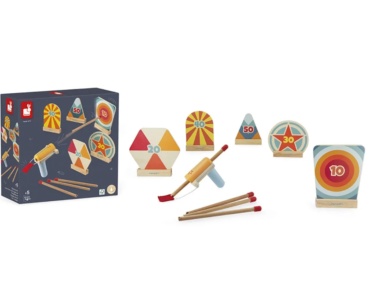¡Apunta y dispara! En este juego puedes jugar con 5 dianas de colores con soporte para anotar de 10 a 50 puntos. La parte posterior de los dardos es magnética, y las puntas están hechas de silicona para mayor seguridad. Este juego de habilidad, que se puede utilizar en interiores y exteriores, permite desarrollar la motricidad fina, la destreza y la concentración de los niños.