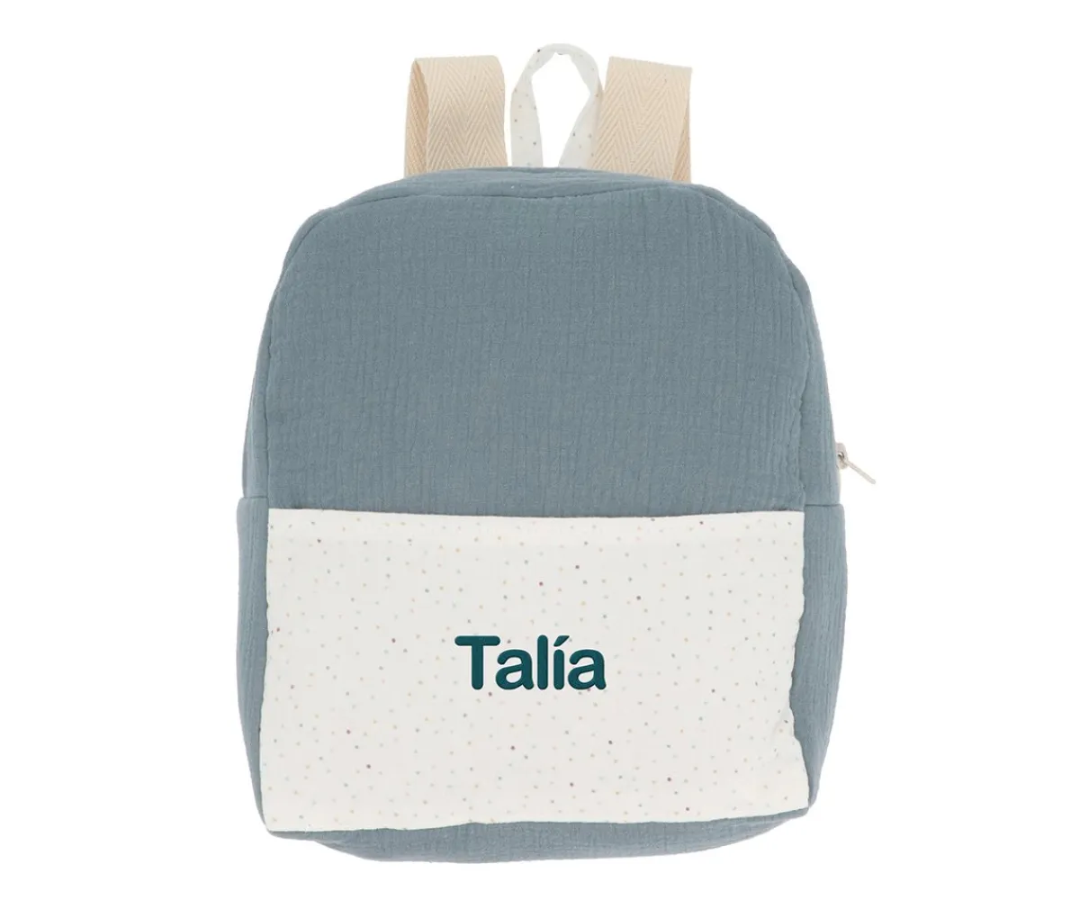 Mochila de tela ideal para llevar las mudas a la escuela infantil o primeros cursos del colegio. Se puede colgar fácilmente en una percha o gancho gracias al asa que lleva en la parte superior.
