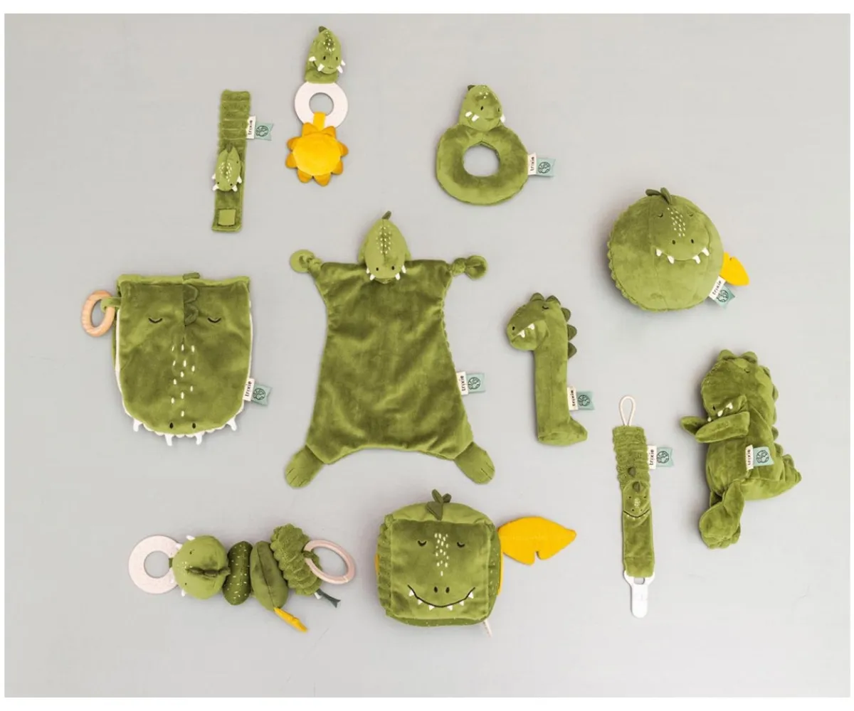 - Material: algodón orgánico, poliéster reciclado, sonajero y chirriador