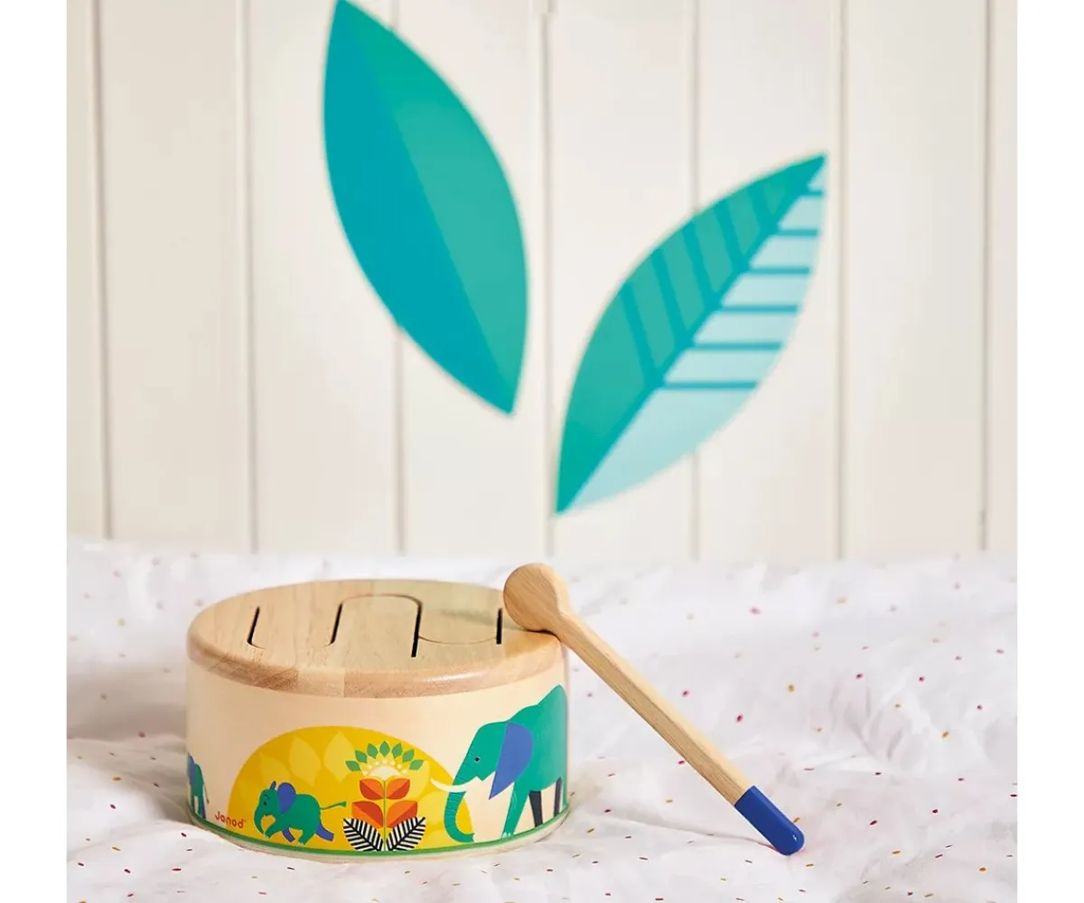 Descubre el bonito tambor de madera Gioia de Janod, ¡ideal para pequeños músicos!