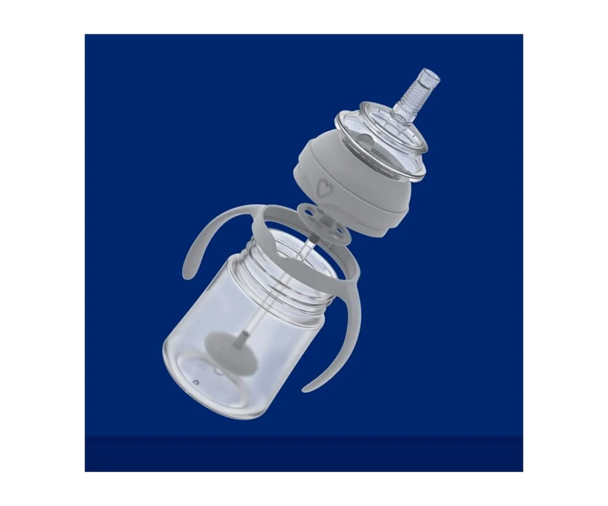 Inlcuye una pajita felxible perfecta para no irritar el paladar y asas para que sea fácil de agarrar por los peques.