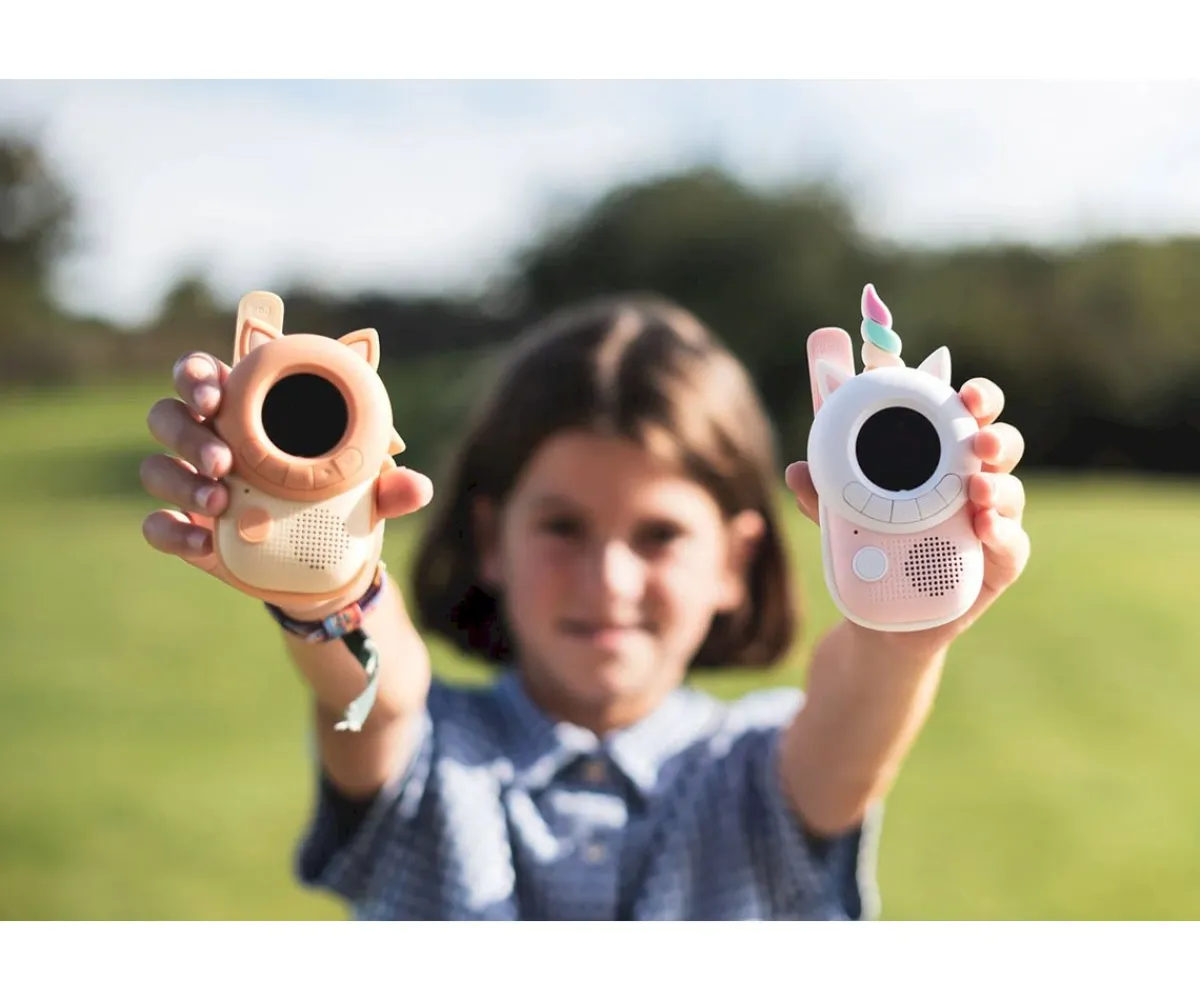 - Incluye: 2 walkie talkie unicornio y zorro, 1 juego de pegatinas, 2 correas de transporte e instrucciones